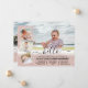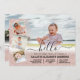 Este anúncio de nascimento elegante e moderno de uma menina fotográfica é perfeito para a sua filha. Ele apresenta um gradiente de luz rosa dourada cintilante com impressão falsa com uma colagem de cinco fotos. É bonito, chico, glamouroso, feminino e moda; a design perfeita para enviar a família e amigos pelo anúncio especial da sua filha. ***NOTA DE DESIGN IMPORTANTE: Para qualquer solicitação de design personalizada, como produtos correspondentes, alterações de cor, mudanças de posicionamento ou qualquer outra solicitação de alteração, envie uma mensagem ao designer. Você pode até enviar uma solicitação para um design completamente personalizado e novo.