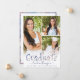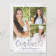 Anúncio de graduação moderno com um título de FORMANDO de traçado de pincel de várias cores na frente e atrás, com um total de 4 fotos (3 na frente e uma na parte traseira). O verso oferece um lugar para incluir informações adicionais sobre o formando (realizações e/ou planos futuros). DICA DA FOTO: Pré-recorte/dimensione as fotos em uma forma semelhante, conforme mostrado ou tenha o assunto no meio ANTES de carregar para obter resultados mais rápidos e fáceis. Entre em contato com o designer por meio do Zazzle Chat ou makeitaboutyoustore@gmail.com se você quiser que este design seja modificado, em outro produto ou quiser coordenar itens.