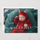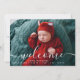 O Anúncio do Bebê Sobreposto do Script de Boas-vindas da Colagem de Fotos Personalizada é uma forma moderna e dinâmica de anunciar a nova adição à sua família. Seu design é unísexo e adequado para garotas e garotos. A frente tem uma grande foto com o texto de boas-vindas na escrita branca e o nome do bebê e o modelo de natalidade. A parte de trás tem uma colagem de 4 fotos e uma modelo de linha bem-vinda, assim como o nome do bebê na escrita.