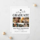 Cartão de convite de formatura de 2026 com 6 fotos do graduando, o texto "parabéns ao graduando", o nome, ano de conclusão, um boné de graduação, a frase inspiradora "a borla valeu todo o esforço" e quais são os planos subsequentes.