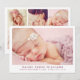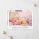Cartão de anúncio de nascimento de foto com estilo simples apresenta sua bebê menina com uma grande foto de recém-nascido em paisagem na frente, emoldurada por uma borda branca limpa com nome em serifa espaçada clássica e detalhes de nascimento em rosa malva. A parte de trás apresenta uma colagem quadrada de seis fotos com uma mensagem "Recebida com Amor" dos pais. A cor do texto em rosa malva pode ser personalizada. Todo o texto é totalmente editável.