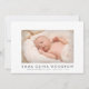 Um anúncio de nascimento de colagem de fotos de menina moderna e fofa para enviar aos seus amigos e familiares. Foto adorável do bebê na frente e uma colagem de fotos de 3 fotos no verso com seus nomes. Você deve substituir esta foto por uma foto de seu próprio recém-nascido com uma foto de orientação paisagem que funciona melhor no espaço.