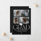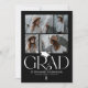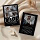 Anuncie o marco do graduado com um estilo sofisticado e atemporal com este elegante cartão de anúncio de graduação preto e branco. Com um fundo preto moderno, o design destaca a palavra "GRAD" em uma tipografia serifada moderna, acentuada com um ícone de um chapéu de graduação estiloso acima do "R". A cauda fluída do "R" se transforma em uma borla elegante que conecta o nome do graduado, a escola e o ano de formatura, criando um acabamento coeso e sofisticado.