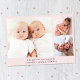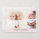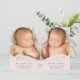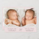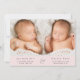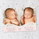 Mínimo de gêmeas cor-de-rosa pastel fotografam o anúncio de nascimento da colagem apresentando suas fotos, nomes, datas de chegada e estatísticas de natalidade em uma tipografia simples e moderna. No verso, adicione três fotos adicionais e sua mensagem "bem-vinda".