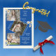Anúncio personalizado de festa de formatura de colagem de 4 fotos com fundo azul. Acentuado com margaridas brancas de cor d'água. Simples e doce. Adicione suas fotos especiais para criar seu próprio anúncio pessoal. Outras cores e estilos disponíveis.