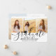 Compartilhe a alegria de uma formatura do ensino médio ou faculdade com esses anúncios personalizados de colagem de 4 fotos. Todas as imagens e textos são fáceis de personalizar. (DICA DE COLOCAÇÃO DE IMAGEM: Uma maneira fácil de centralizar uma foto exatamente como você deseja é cortá-la antes de fazer o upload para o site da Zazzle.) Este modelo pode ser personalizado com qualquer detalhe de sua escolha, como informações de convite para festa, nomes dos pais, honrarias especiais, título do diploma, citação inspiradora favorita, informações de contato do graduado, planos de educação futura ou novo cargo. Se houver algum texto que não seja desejado, basta excluí-lo. O design apresenta caligrafia de estilo manuscrito, tipografia moderna minimalista e quatro fotos de sua escolha, como fotos de formatura ou imagens da cerimônia de formatura. Esses cartões de anúncio de formatura elegantes são uma maneira moderna e sofisticada de compartilhar a celebração do seu dia especial com familiares
