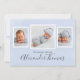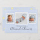 Anúncio de nascimento de um bebê com fundo azul e estrelas cintilantes, com uma rima de berçário favorita "A vaca saltou sobre a lua" Este modelo duplo é excelente para os anúncios de menino e menina, e apresenta três fotos no lado da frente, e uma vaca branca com data e estatísticas no lado de trás. Esta design apresenta um anúncio de bebê com fotografia neutra do gênero com um bebê recém-nascido excelente simples para menino ou menina, uma tipografia fotocaligráfica minimalista, com data e estatísticas neutras do gênero, estrelas aquáticas bonitinhas modernas e bonitas, com uma vaca a saltar sobre a lua, um roteiro clássico de rima de berçário, rustiche de fazenda de vaca, fotografia nascimento de bebê, estrelas de na moda