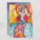 Caráter mascarada veneziano colorido, brilhante e vibrante. A loira sofisticada está sentada com uma máscara de penas na mão com tecidos espumantes de ouro, prata, azul, teal de uma fantasia barroca mascarada com penas e faíscas florais em cores brancas, rosa, amarelas.