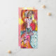 Caráter mascarada veneziano colorido, brilhante e vibrante. A loira sofisticada está sentada com uma máscara de penas na mão com tecidos brilhantes de ouro, prata, azul, lacas de um figurino barroco mascarado com penas e uma rosa vermelha de ouro em cores brancas, rosa, amarelas.