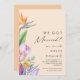 Este colorido anúncio de fuga tropical para o casamento perfeito é ideal para o seu moderno casamento verde, roxo e laranja em um destino boho. O design apresenta um buquê elegante de folhagens e flores clássicas de aquarela de praia, incluindo eucalipto verde-sage, protea roxa e vermelha, hibisco rosa bege, ave-do-paraíso laranja e azul, e folha de palmeira verde escura. O design é ideal para um casamento de viagem simples, criativo e único na primavera, verão, outono ou inverno! Por favor, encontre outros materiais de papelaria de casamento correspondentes ou coordenados no restante da coleção.