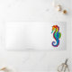 Articulação artificial, brilhante, arco-íris, cavalo de mar poligonal sobre fundo branco. Tatuagem brilhante.