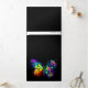 Arco-íris, borboleta monarca luminosa, pintada artisticamente com buquê de rosas iridescentes, brilhantes e luminescentes sobre fundo preto. Borboleta-arco-íris.