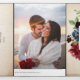 Modelo de cartão de convite triplo para casamento em tons de burgundy vermelho, rosa e azul marinho com aquarela, com folhagem botânica verde e folhas de eucalipto em fundo de madeira, estilo rústico e sofisticado. Este lindo design, fácil de personalizar, combina facilmente com as cores, estilos e tema do seu casamento e é uma escolha perfeita para casamentos de outono, verão ou inverno. Você pode encontrar mais designs correspondentes na minha loja ou entrar em contato comigo se precisar de ajuda na personalização do design.