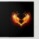 Coração de anjo com asas flamejantes em fundo preto.