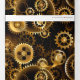 Sem costura, metal, latão, engrenagens douradas sobre fundo escuro enferrujado. Estilo Steampunk.