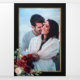 Convite para casamento geométrico com burlões azuis marinhos escuros, com buquê elegante de azul marinho, azul real, branco, branco, borrifado, rosa de marsala e folhas verdes de eucalipto sábio e elegante quadro neutro geométrico de brilho dourado. Entre em contato comigo para obter ajuda sobre a personalização ou se você precisar de outro produto com este design.