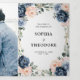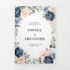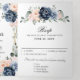 Dusty blue floral geométrico convite de casamento com elegantes ramalhetes de azul escuro / azul desbotado, branco, rosa beije, rosa pêssego e folhas de eucalipto verde-sage e moldura geométrica neutra com brilho elegante. Por favor, entre em contato comigo para obter ajuda na personalização ou se você precisar de qualquer outro produto com este design.