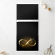 Símbolo infinito de joias Dourado com estrelas douradas sobre fundo preto. Design com estrela dourada.