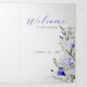 O triplo anúncio de casamento apresenta um belo design floral com flores azuis e marfim reais, complementado por sotaques folínicos verdes. O painel central, que serve como cobrir frontal, dá calorosas boas-vindas aos convidados com os nomes do casal em roteiro elegante. O painel esquerdo fornece informações detalhadas sobre o evento, incluindo local e acomodações, enquanto o painel direito inclui a data do casamento, a hora e os detalhes do local. Esta design é perfeita para um convite de casamento formal e esteticamente agradável.