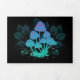 Misteriosos, bioluminescentes, alucinogênicos, ferramentas brilhantes com arbustos de plantas pântanas à noite, fundo escuro e brilhante. Cogumelos brilhantes. Goblincore, Mushroomcore