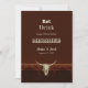 Anúncio de casamento country western cowboy comer beber casado diversão madeira marrom. Crânio de touro rústico. Use um pouco de humor com esses convites engraçados e fofos em estilo fazenda. Coma, Beba, porque estamos nos casando pode ser personalizado. Design trendy, estilo vintage antigo do oeste selvagem. Animal de fazenda legal. Personalize a caligrafia e a tipografia. Direitos autorais da imagem Marg Seregelyi Photography.