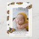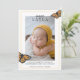 Celebre e anuncie suas maiores notícias com essas lindas cartas de borboletas! Compartilhe suas notícias felizes com a família e amigos e mostre seu estilo! A carta mostra a arte de uma borboleta Monarca fluindo amorosamente em torno de uma foto retrátil do seu doce bebê! Com uma borda em um texto ouro amarelo e clássico, esses cartões de eterno são elegantes e contemporâneos. A camada de texto diz, "conheça (nome do bebê)" seguido de espaço para personalizar com as estatísticas de nascimento do seu bebê, ou qualquer informação que você queira. A parte de trás apresenta mais uma foto retrato, porque quem possivelmente só pode escolher uma foto do seu adorável bebê precioso? A arte da borboleta da frente é padronizada atrás para um tema coeso.