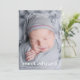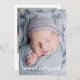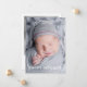 Este simples anúncio moderno é a maneira perfeita de apresentar seu bebê recém-nascido à sua família e amigos. A design apresenta uma grande foto do bebê com MEET e o primeiro nome do bebê em tipografia branca. O verso também inclui uma fotografia e é personalizado com o nome do cheio, a data de nascimento, os estatutos de nascimento e os nomes dos pais dos bebês.