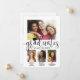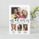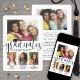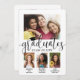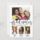 É uma formatura tripla! Anuncie a conquista de três formando com anúncios personalizados de colagem de fotos de graduação em conjunto com na moda. As fotos e o texto deste modelo são simples de personalizar para cartões de anúncio ou convites de festas de formando. Além disso, as cores podem ser personalizadas com a ferramenta design Zazzle. (DICA DE IMAGEM: Uma maneira fácil de posicionar uma foto exatamente como você deseja é recortá-la antes de carregá-la no site do Zazzle.) O design moderno preto e branco apresenta uma caligrafia de script de estilo manuscrito com um boné de conselho de argamassa, uma elegante tipografia clássica e cinco fotos de sua escolha, como fotos de mais velho ou imagens da cerimônia de início. Este convite para a formatura é uma forma na moda para anunciar uma celebração especial para três formandos, como irmãos, melhores amigos, primos, trigêmeos, colegas de equipe, irmãos e irmãs, etc. Parabéns aos formandos!