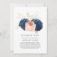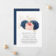 Convite de casamento com lista de convidados reduzida com flores rosa, azul marinho e dourado e tipografia elegante personalizável para os detalhes do seu evento. Nesses tempos incertos, pode acontecer que você precise realizar um casamento menor do que o originalmente planejado. Este cartão de anúncio eliminará a desconfort e tirará um peso da sua mente! Além disso, você pode oferecer a opção de participar de uma cerimônia virtual.
