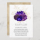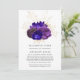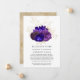 Convite de casamento floral azul real, roxo e violeta com acentos de ouro personalizáveis para os detalhes do seu evento. Nesses tempos incertos, pode acontecer que você tenha que realizar um casamento menor do que o originalmente planejado. Este cartão de anúncio vai tirar a estranheza e tirar um peso da sua mente! Você pode ainda oferecer a opção de se juntar a você para uma cerimônia virtual.