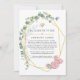 Anúncio de lista de convidados de casamento reduzida com eucalipto geométrico moderno e rosas cor de rosa, com moldura geométrica dourada. Nesses tempos incertos, pode acontecer que você precise realizar um casamento menor do que o originalmente planejado. Este cartão de anúncio irá tirar a estranheza e tirar um peso da sua mente! Além disso, você pode fornecer uma opção para se juntar a você para uma cerimônia virtual.