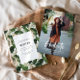 Anúncio/convite para apresentação de fotos tropicais pintados. Texto de script pintado à mão.
