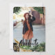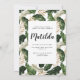Anúncio/convite para apresentação de fotos tropicais pintados. Texto de script pintado à mão.
