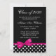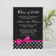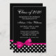 Convites cor-de-rosa do anúncio da graduação das bolinhas do arco. Um teste padrão de bolinhas preto e branco à moda com uma ilustração da fita do rosa quente. Aperfeiçoe para uma conclusão do ensino secundário, uns formandos ou uma festa de formatura! O design é ilustrações/gráficos impressos - FITA NAO REAL.