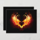 Coração de anjo com asas flamejantes em fundo preto.