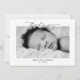 Apresentando nosso moderno Cartão de Anúncio de Nascimento, a maneira perfeita de compartilhar seu novo membro da família com os entes queridos. Este cartão apresenta tipografia de script com um pequeno e elegante coração, criando um eterno e um visual elegante. Personalize-o com uma fotografia do seu recém-nascido e partilhe os seus estados de nascimento, incluindo o seu nome, data de nascimento, peso e comprimento. Este cartão não só anunciará a chegada do seu bebê, como também servirá de obrigado para aqueles que o apoiaram ao longo do caminho. Celebre seu precioso pequeno com este lindo e personalizável Cartão de Anúncio de Nascimento.