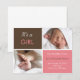 O anúncio da Baby Girl com um design de bloco colorido em rosa e marrom. Carregue as suas fotografias no espaço fornecido e introduza as informações do seu bebê.