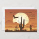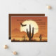 O anúncio de mudança perfeito quando seu destino final é um local desértico. O convite dourado-marrom apresenta a silhueta de um gavião e a paisagem do deserto contra um grande sol. Desenho por Ilustração de Cena do Deserto da Vecteezy.