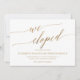 Estes elegantes cartões de anúncio de elopemento de caligrafia dourada têm um design bonito e simples. A design neutra apresenta uma carta minimalista decorada com a tipografia falsa de ouro romântica e caprichosa. O cartão diz "Nós Eloped". Personalize a placa com os detalhes do seu casamento e use a seção modelo na parte traseira para obter informações de recepção, para anunciar uma mudança de endereço ou para quaisquer outros detalhes que você gostaria de compartilhar. Nota: Este design não apresenta folha de ouro real. É um gráfico de alta qualidade feito para se parecer com folhas de ouro.
