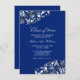 Um anúncio de graduação em azul-prata e marinho. Design clássico e formal com elegantes espirais florescentes. Perfeito para a graduação, formandos ou festa de formatura de um segundo grau! Designs são ilustrações/gráficos impressos planos - NÃO FOIL DE PRATA REAL. Ilustração por © Mujka Design