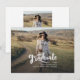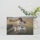 Um anúncio de graduação de 2025, moderno e elegante, com duas fotos da faculdade ou do formando segundo grau. Essa tendência e o script branco casual aparecem em uma sobreposição. Adicione as fotos do formando na frente e no verso e edite o texto na parte traseira para fazer deste cartão um simples anúncio de graduação ou um convite de festas de formando.