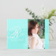 Este anúncio da graduação é uma maneira bonita de comemorar logo seu para ser graduado! O fundo é um teste padrão variegated do bloco da cor no azul de turquesa. A imagem do seu formando vai ao lado direito com seu nome e seu ano de graduação à esquerda. Seu texto personalizado vai na parte traseira.