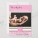 Este design de anúncio de bebê precioso é uma maneira maravilhosa de celebrar sua nova chegada. Este design tem um fundo de rosa claro bloqueado com listras brancas e marrons. No centro está um lugar para sua foto personalizada da sua filha. No topo diz que nos damos orgulhosamente bem-vindos e o nome do seu bebê. Abaixo da foto há um lugar para o seu primeiro monograma inicial. No fundo, há um lugar para as estatísticas de natalidade do seu bebê, e os nomes dos pais.