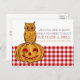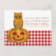 Cartão-postal de lançamento da Pumpkin Owl & Gingham Baby Girl. Este anúncio tem as palavras, "Uma Coruja e um Hoot e um Pumpkin para Boot, nós fizemos um Spell agora que temos uma menina!" O fundo tem um padrão Gingham neat que adiciona ao design de fazenda, excelente de usar para que seus entes queridos saibam que sua filha chegou.