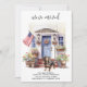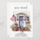 Anuncie sua mudança para a família e amigos com nosso anúncio patriótico e comovente com uma bela pintura aquosa de um cão Dachshund, casa moderna com uma porta azul e a bandeira americana orgulhosamente exibida na varanda da frente. Este anúncio é perfeito para amantes de cães e qualquer um que queira anunciar seu novo endereço. Com seu esquema de cores vermelho, branco e azul, este anúncio é uma forma excelente de mostrar seu amor pelos EUA enquanto compartilha suas notícias emocionantes. Avise a todos que "nos mudamos!" e convide-os a visitarem-se e conhecerem o seu melhor amigo na sua nova casa. COPYRIGHT © 2023 Judy Burrows, Black Dog Art - Todos Os Direitos Reservados. Anúncio de Movimentação de Cão Pet Personalizado Patriótico Dachshund