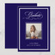 This formal and modern class of 2026 graduation announcement features a dark blue background with a classic white frame. A photo of the grad goes in the center, and elegant fancy calligraphy script says "graduate" at the top. A luxe, sophisticated look for the adult grad.