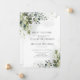 Informe seus convidados sobre a mudança de data com estilo com este elegante e moderno aviso de adiamento de data de casamento com verde de eucalipto azul empoeirado, apresentando eucalipto pintado à mão em aquarela, floreios e pontos em aquarela. O campo do título é um modelo e você pode alterar a redação para torná-lo seu—'mudamos a data', 'desculpe pelo inconveniente', 'adiar a data', 'cancelar a data', 'data adiada', ou qualquer texto que funcione melhor para você e seu evento. Todos os direitos reservados, Copyright Elegant Invites.