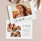 Anuncie sua formatura com nosso Cartão de Anúncio de Graduação de Colagem de Foto do Script Mínimo Moderno 5. Apresentando uma fonte elegante e moderna e um design minimalista, este cartão de anúncio é perfeito para formandos segundos graus e universitários. O layout de colagem de 5 fotos adiciona um toque pessoal e o torna uma lembrança memorável para você e seus entes queridos. Celebre suas conquistas e informe a todos sobre seu grande dia com este cartão de anúncio. Faça o pedido agora e personalize com os seus detalhes de graduação e fotos para torná-lo verdadeiramente único.