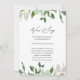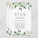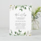 Este simples aviso de adiamento de casamento com elementos botânicos em verde sálvia e branco é uma maneira simples e doce de informar aos convidados que a cerimônia foi adiada devido a eventos imprevistos. Este lindo design apresenta elegante caligrafia "lamento" e folhas em aquarela.