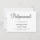 Cartão de anúncio de adiamento de casamento preto-e-branco moderno com um simples design com o título em script. Um design básico e simples que ainda se encontra tão elegante. Estes cartões de anúncio minimalistas são uma forma excelente de avisar os seus hóspedes que o seu casamento foi adiado.